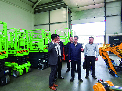 代表團一行先后走訪了柳工英國公司的工廠改裝車間、設(shè)備儲存車間以及配件中心,詳細聽取了公司工作匯報,了解了柳工在英國的發(fā)展歷程、英國的市場環(huán)境、柳工的主營產(chǎn)品線,以及公司日常運營、網(wǎng)點建設(shè)、客戶服務(wù)及技術(shù)支持等方面情況。柳工英國公司負責人詳細匯報了在英國2035年碳中合目標的環(huán)保大背景下,柳工電動產(chǎn)品在英國的上市情況和重點推廣策略,主要介紹了裝載機、挖掘機、高空作業(yè)平臺等綠色電動產(chǎn)品的產(chǎn)品優(yōu)勢與機會。