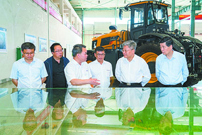 孫東生詳細(xì)了解了農(nóng)機(jī)公司的生產(chǎn)經(jīng)營(yíng)狀況、技術(shù)創(chuàng)新能力、市場(chǎng)布局及發(fā)展規(guī)劃,實(shí)地察看了拖拉機(jī)和甘蔗收獲機(jī)等產(chǎn)品,并與鄭津、朱斌強(qiáng)進(jìn)行了深入交流。孫東生對(duì)農(nóng)機(jī)公司在農(nóng)業(yè)機(jī)械領(lǐng)域取得的成就給予了充分肯定,他指出,柳工在技術(shù)研發(fā)、市場(chǎng)開拓、社會(huì)責(zé)任履行等方面展現(xiàn)了良好的示范作用,要繼續(xù)堅(jiān)持創(chuàng)新驅(qū)動(dòng),突破關(guān)鍵核心技術(shù),增強(qiáng)自主創(chuàng)新能力,推動(dòng)農(nóng)機(jī)行業(yè)高質(zhì)量發(fā)展。同時(shí),柳工要一體推進(jìn)產(chǎn)學(xué)研發(fā)展,重點(diǎn)關(guān)注和了解制約農(nóng)業(yè)科技、機(jī)械、人才等方面高質(zhì)量發(fā)展的瓶頸問題,如CVT變速箱、精密傳感器等高端農(nóng)機(jī)核心零部件的國(guó)產(chǎn)化率情況,優(yōu)秀人才引留等。