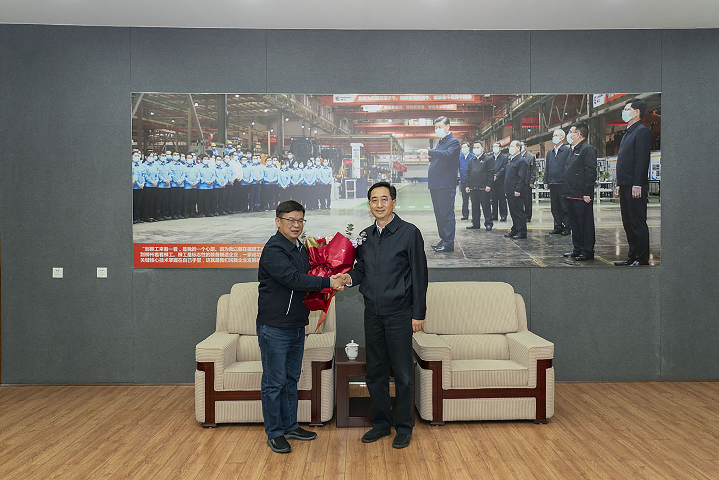 另訊 1月23日,柳州市人大常委會(huì)黨組副書(shū)記、副主任張建國(guó),柳州市總工會(huì)黨組書(shū)記、分管日常工作的副主席韋瑋一行到柳工代頒“全國(guó)職工職業(yè)道德建設(shè)標(biāo)兵單位”牌匾和證書(shū),并慰問(wèn)柳工勞模工匠、一線員工代表,向柳工表示祝賀,給大家送上新春祝福。