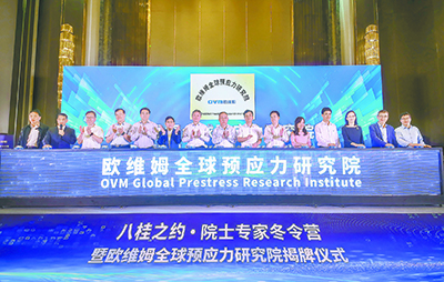 10月15日,由歐維姆公司主辦的“八桂之約·院士專家冬令營暨歐維姆全球預應力研究院揭牌儀式”在廣西柳州舉行。歐維姆全球預應力研究院揭牌成立后,將整合全球優(yōu)質(zhì)資源,構建全球市場和技術應用平臺,更高效地推動全面國際化進程,使預應力技術惠及更廣泛的地區(qū)和人群。