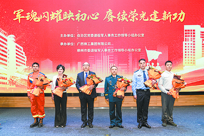 自治區(qū)黨委退役軍人事務(wù)工作領(lǐng)導(dǎo)小組辦公室副主任、自治區(qū)退役軍人事務(wù)廳副廳長(zhǎng)王幼林,集團(tuán)公司黨委副書(shū)記、紀(jì)委書(shū)記、工會(huì)主席賴頌平,柳州市人民政府二級(jí)巡視員袁燕珍等領(lǐng)導(dǎo)出席活動(dòng)。