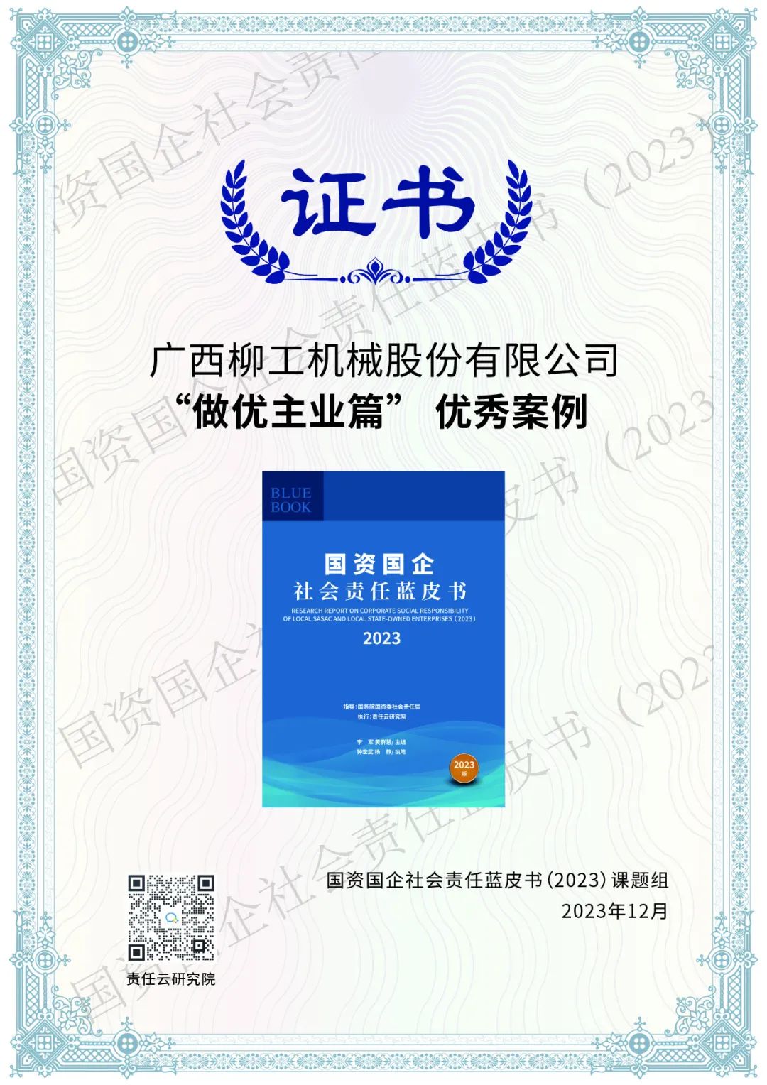 近日,由國(guó)務(wù)院國(guó)資委社會(huì)責(zé)任局主辦的“中央企業(yè)和地方國(guó)資國(guó)企社會(huì)責(zé)任系列藍(lán)皮書(shū)集中發(fā)布活動(dòng)”在北京召開(kāi),會(huì)上正式發(fā)布《國(guó)資國(guó)企社會(huì)責(zé)任藍(lán)皮書(shū)(2023)》(以下簡(jiǎn)稱《藍(lán)皮書(shū)》),并公布“國(guó)有企業(yè)社會(huì)責(zé)任·先鋒100指數(shù)”榜單,柳工集團(tuán)榮登榜單,是廣西唯一一家入選該榜單的企業(yè)。
