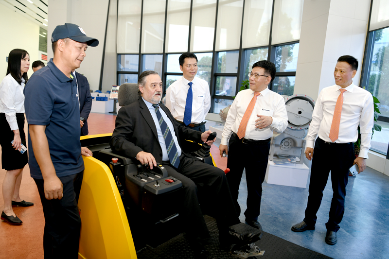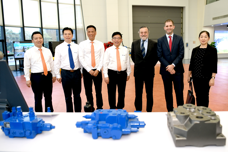簽約儀式后,龔恩澤總領(lǐng)事一行參觀了柳工全球研發(fā)中心,曾光安介紹了柳工六十四年的發(fā)展歷程,以及柳工的全球化布局,海外產(chǎn)品銷售情況,還有柳工先進(jìn)的研發(fā)技術(shù)和高質(zhì)量發(fā)展。