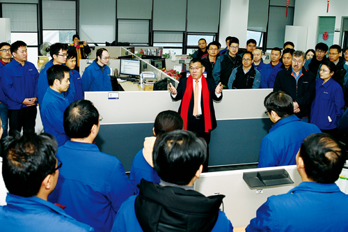 在全球研發(fā)中心,曾光安分別看望慰問了研究總院、裝載機(jī)研究院、挖掘機(jī)研究院、傳動(dòng)件研究所等院所的工程技術(shù)人員,向大家致以新年的祝福問候。他感謝過(guò)去一年公司全體研發(fā)技術(shù)人員為公司發(fā)展做出的不懈努力。他強(qiáng)調(diào),搞產(chǎn)品開發(fā)一定要有創(chuàng)新力,要有自己的核心競(jìng)爭(zhēng)力技術(shù),要摒棄模仿別人產(chǎn)品的“跟班”做法。他希望2019年,裝載機(jī)研究院和挖掘機(jī)研究所在產(chǎn)品開發(fā)領(lǐng)域取得新碩果。