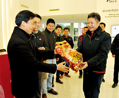 裝載機(jī)公司的員工們準(zhǔn)時(shí)回到工作崗位,抖擻精神,開啟新一年的征程。公司黨委書記、董事長(zhǎng)曾光安等領(lǐng)導(dǎo)為到崗的員工送上了新春祝福。員工們臉上洋溢著濃濃的春意,嘴角掛著幸福的微笑,從公司領(lǐng)導(dǎo)手中接過(guò)新春慰問品的同時(shí),也接收了新的指令。