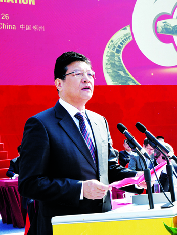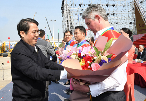 柳州市市長(zhǎng)吳煒向公司勞模頒發(fā)證書(shū)和鮮花
