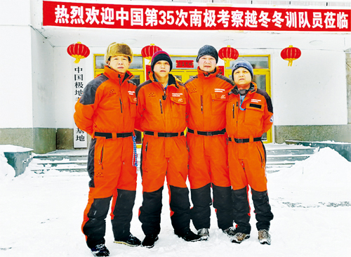 陳波(左一)、韋勇豪(左二)、宋世杰(右一)參加越冬訓(xùn)練時留影