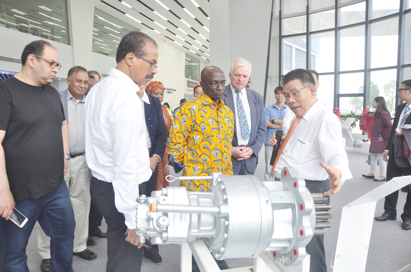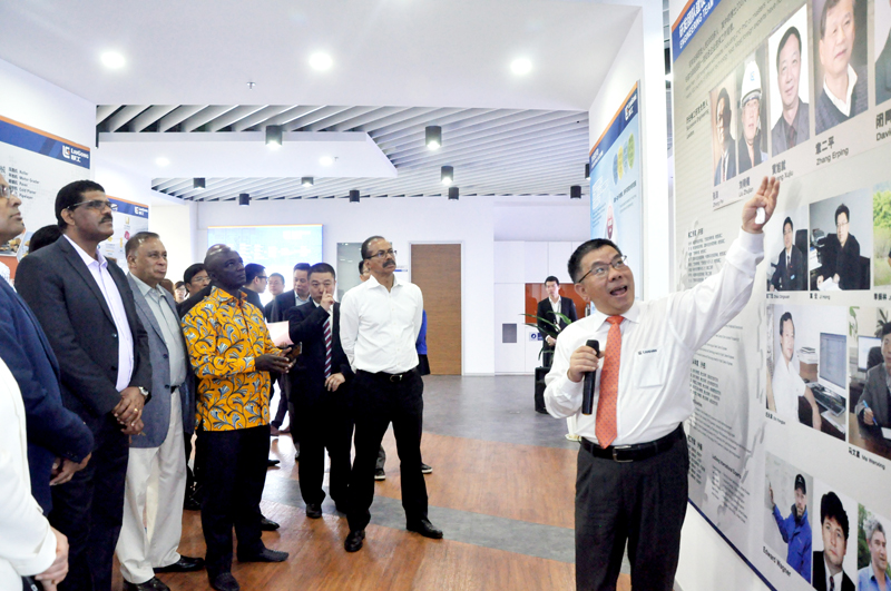 曾光安用流利的英語向來訪貴賓表示熱烈的歡迎,并對柳工發(fā)展大事記、柳工技術(shù)研發(fā)平臺(tái)建設(shè)及柳工一帶一路的海外業(yè)務(wù)布局等方面做了精彩分享。曾光安說,希望未來能與來訪的大使所在國家有更多的合作。來訪的貴賓全程全神貫注,認(rèn)真聆聽,無不對柳工的快速發(fā)展步伐表示贊嘆。