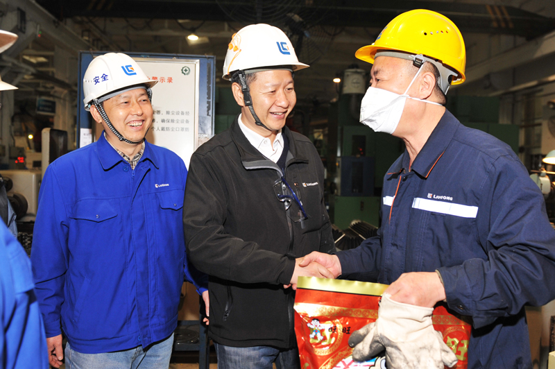 開工儀式結束后,黃海波來到生產車間,對一線的班組人員進行慰問,詢問員工春節(jié)期間的生活情況,并囑咐員工們在高產攻堅戰(zhàn)中,要保重身體并送上慰問品,給員工們帶來了滿滿的祝福。員工們的臉上洋溢著陽光般的笑容,嘴角掛著幸福的微笑。