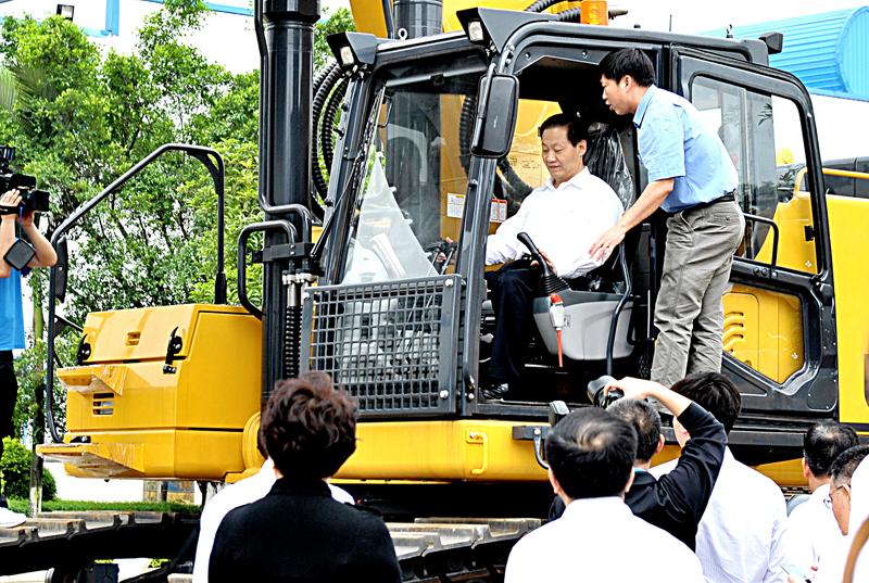 廣西區(qū)黨委書記彭清華體驗公司LCG970大型挖掘機